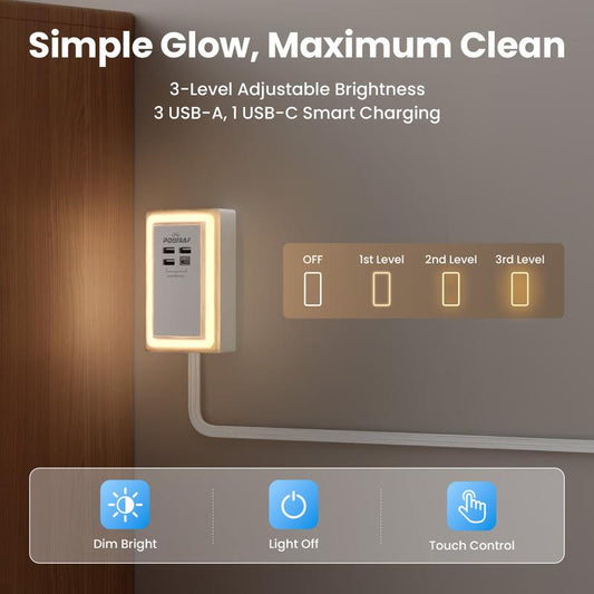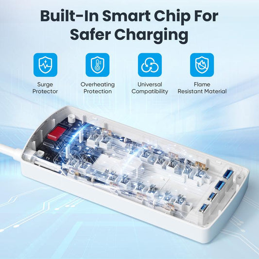 Flat Plug Power Extender For Outlet with 3 USB-A 1 USB-C & 3 AC Outlets